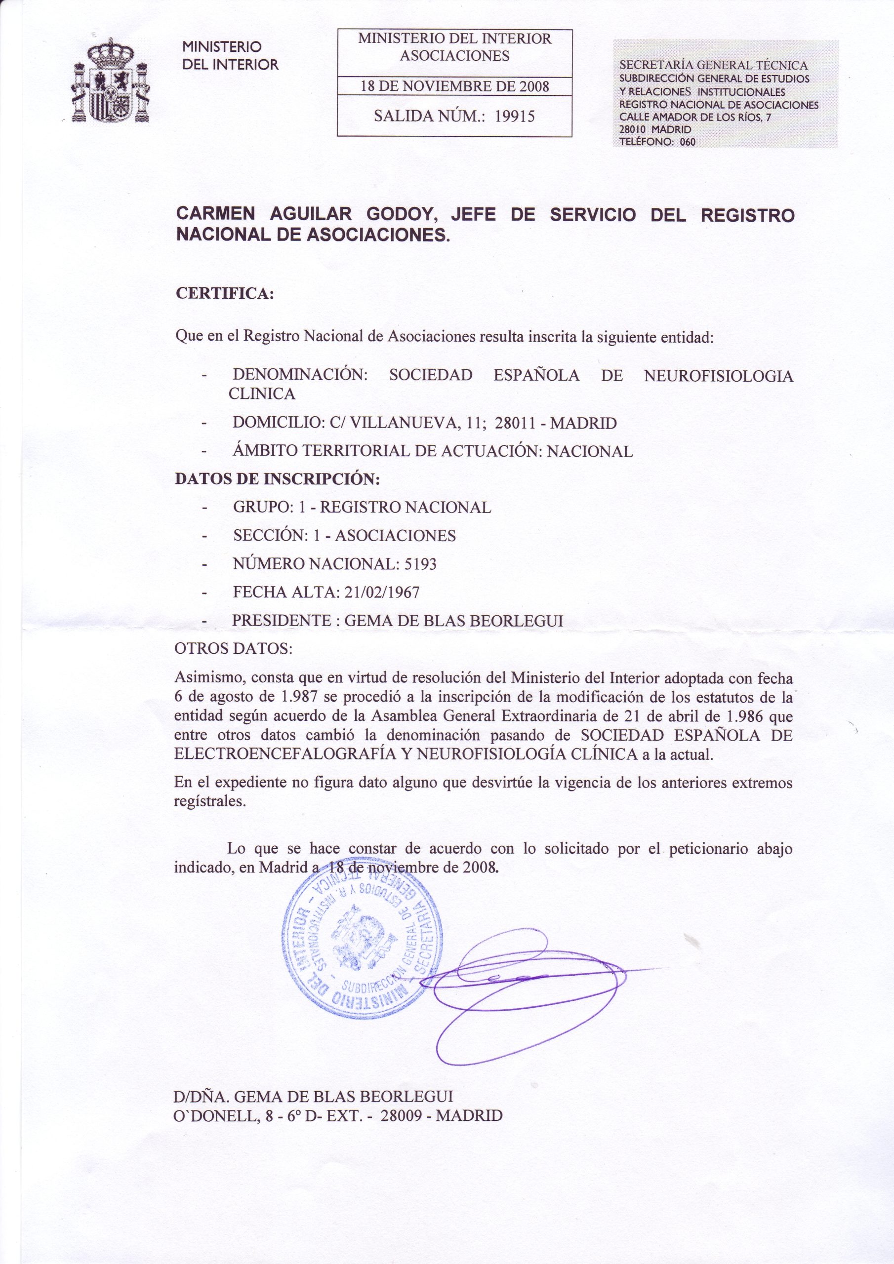 Así mismo, también está disponible la certificación de inscripción de los Estatutos de la SENFC en el Registro de Asociaciones del Ministerio del Interior: Certificado de inscripción.